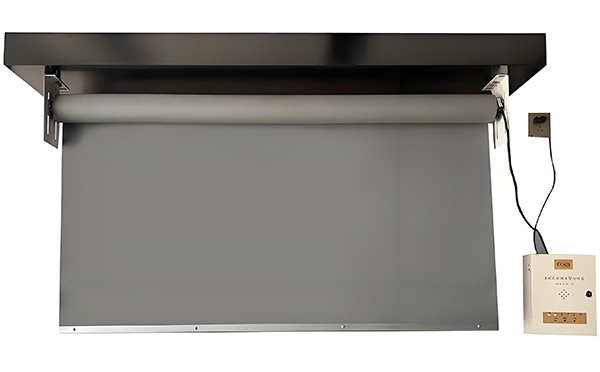 连接电源线和控制线,将和田市挡烟垂壁安装在支架上,并用螺丝固定。